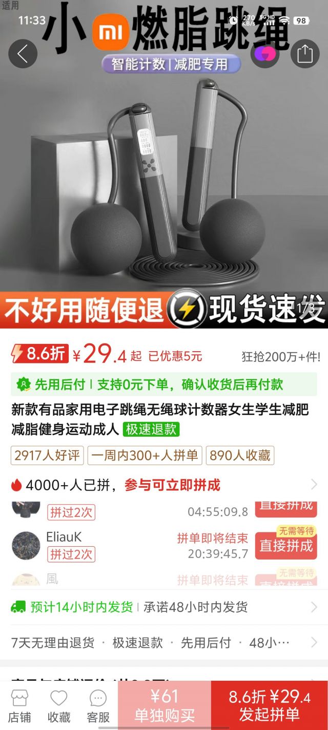 难不成买个可调节长短的跳绳吗?(楼主1米81)有点不太想用那种无绳了,因为没有绳子过脚的联动,感觉没有有绳的效果好
