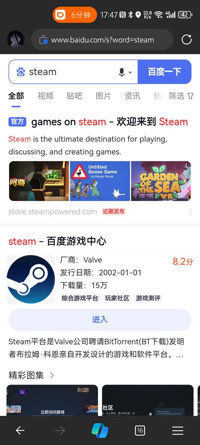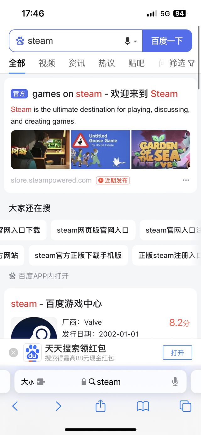 国庆的时候换了台新电脑,在百度上下了个steam,结果登录的时候惊奇的发现竟然是要用手机登录,咦这不对啊,仔细一看是什么steam中心,我才知道刚才下的是盗版,然后又下了一个steam,打开一看,什么steam游戏中心,然后接着下了几个,全是什么steam管家 steam游戏中心 xx平台的,就是没有正版的steam,然后想起我手机不是存了steam商城的网址吗,结果自带的浏览器各种打不开这个网址,开加速器不行,上梯子也不行,难不成网址改了,然后重新下了个谷歌浏览器,加速器都不用开直接上去了,我这才反应过来,肯定是自带的浏览器把steam网址都屏蔽了