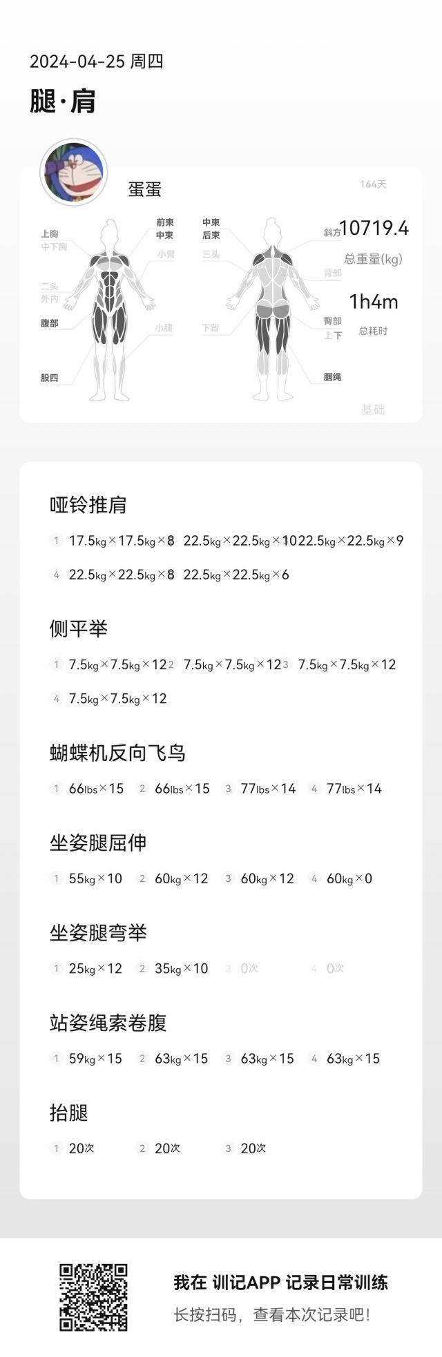 因为之前练腿加重量腰会有不适感(之前做过腰椎间盘突出的手术),如果腰负载过大容易复发,虽然说正确的动作腰受力不多,但我就是一个普通新手健身爱好者,不找教练,所以就不做有风险的动作了,硬拉也是同理,现在腿就是做低重量了