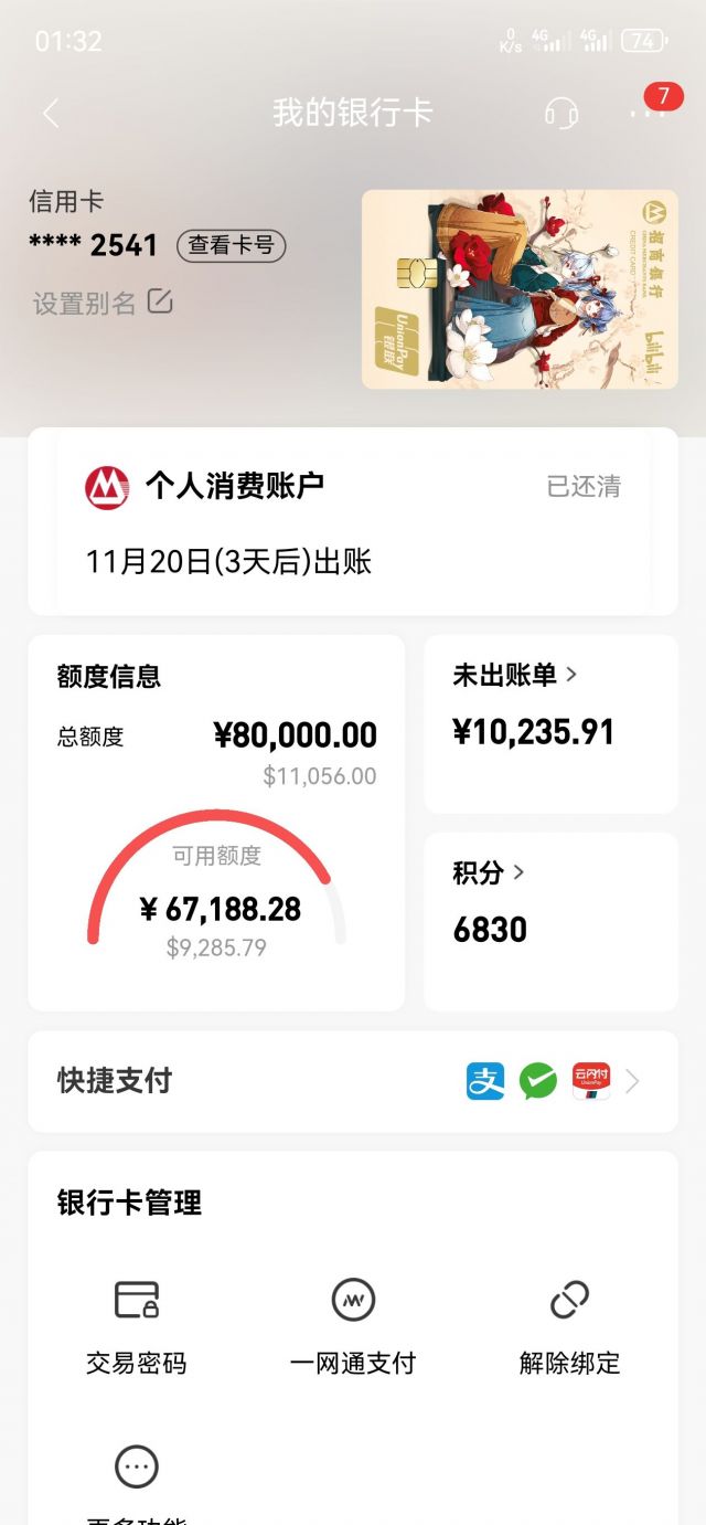 另一张交通visa金卡,已经慢慢涨到10w了,不用管很省心