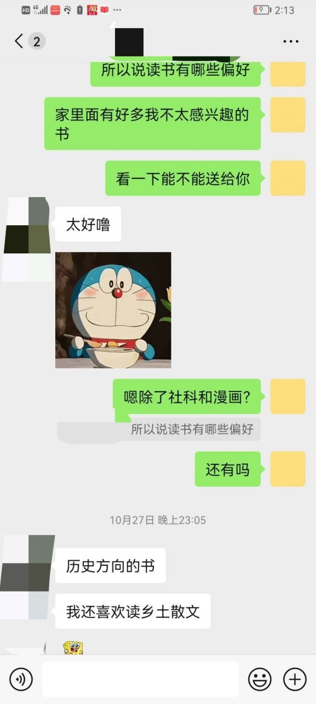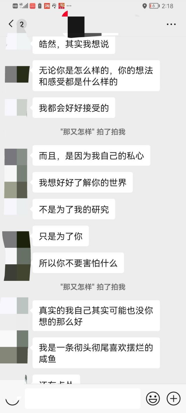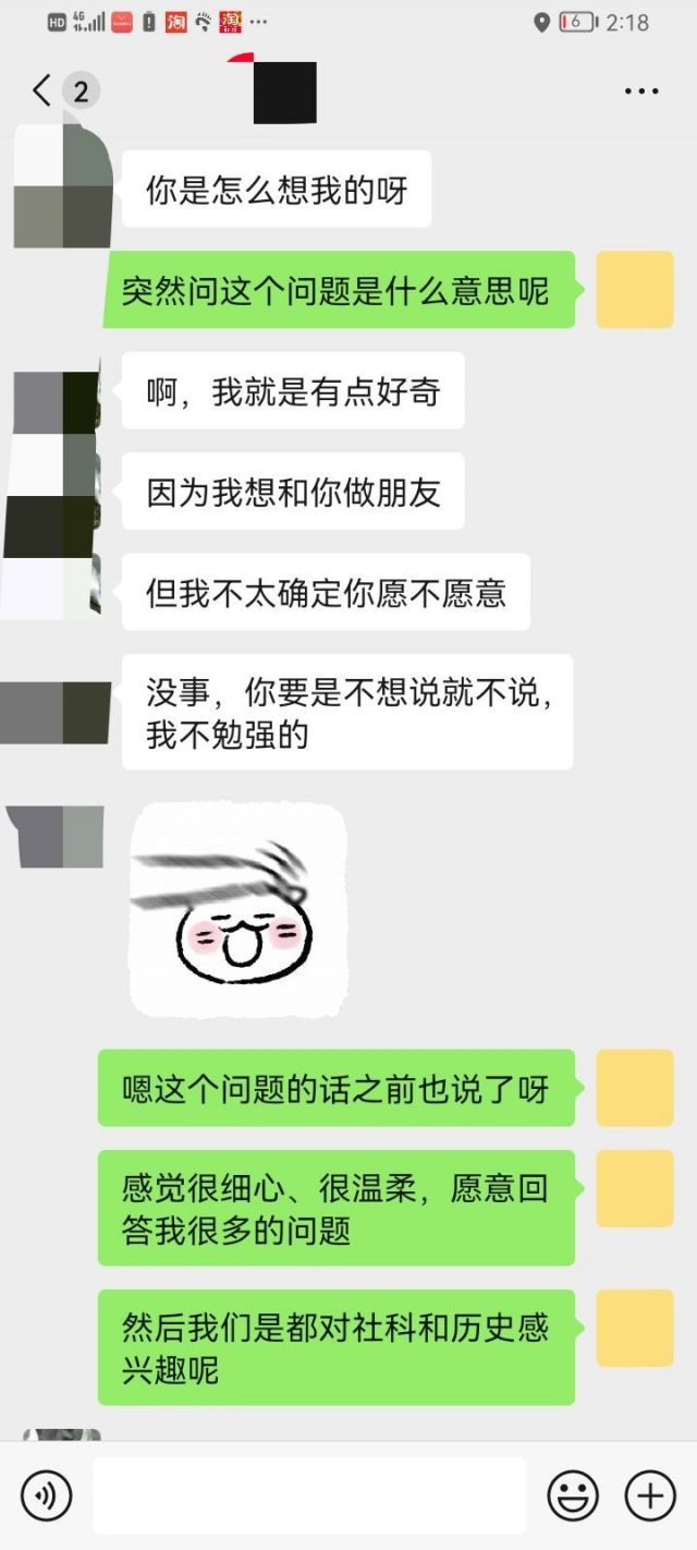 访谈的过程略过不表,大概花了一个小时的样子,中间提到我的兴趣爱好,至少我觉得和她很有共同话题,首先是读书的品味和她有重合,然后发现她也是二次元(虽然她推荐的漫画我还没有看过)我们这几天就一直在往下聊,我现在还不确定她对我和我对她有没有进一步发展的意向,可能人家只是把我当朋友相处,我也不确定我是不是真的喜欢对方(我觉得能有这么多共同话题的朋友还挺难得的,我自己本来也内向,将来再去找其他女生也很难找到兴趣这么重合的了)包括我之前也没谈过恋爱,甚至也没有和异性朋友相处过,希望大家帮忙分析一下,后面放聊天记录