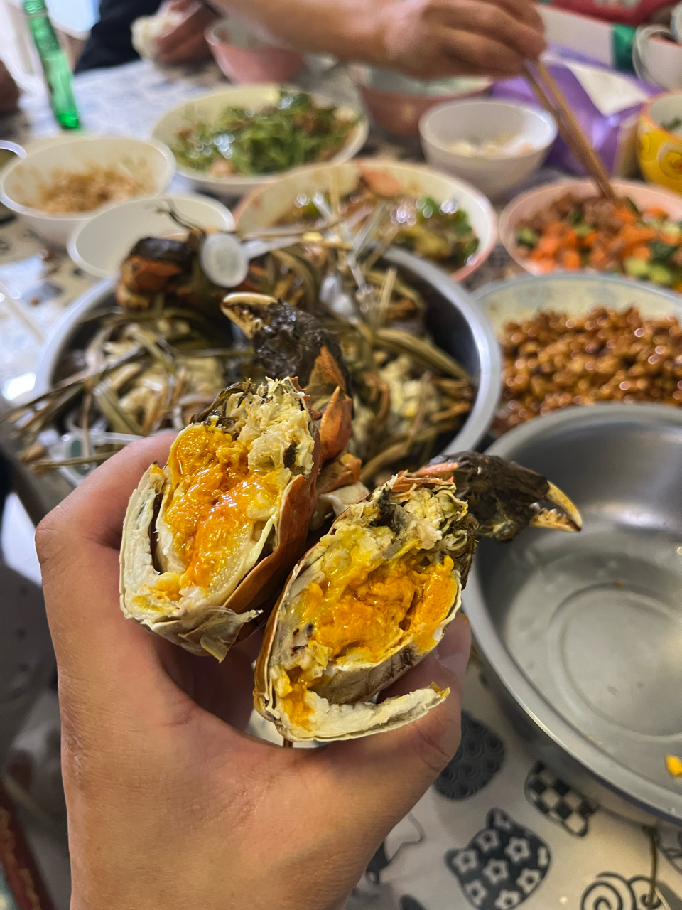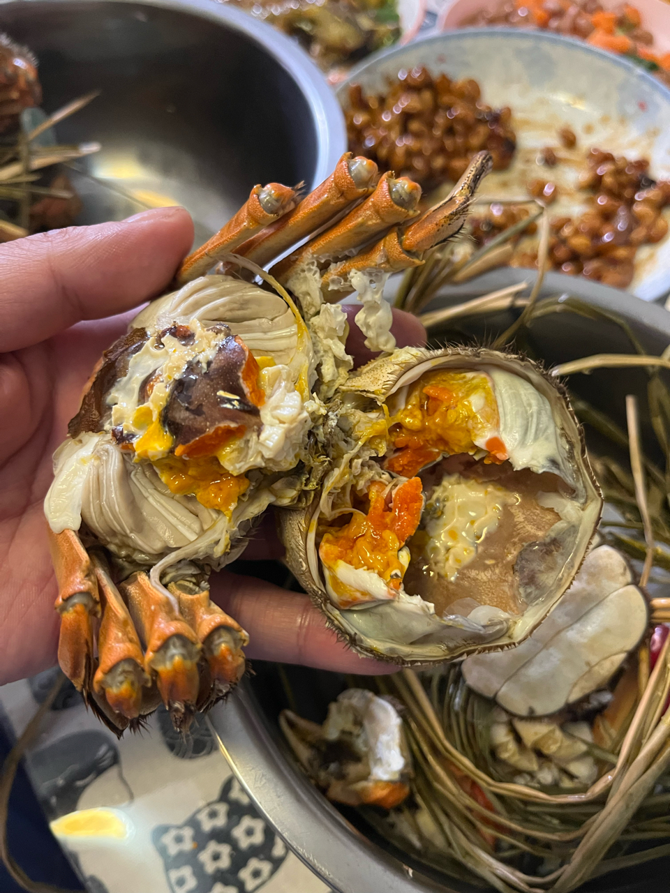 本地挨着一大片湿地湖泊,有300多平方公里. 原来很多养鱼养螃蟹的,后来环境治理不让养了,但是因为有这方面的渠道,所以本地的中华绒毛蟹还是非常便宜. 每年秋天都要吃个爽. 只要在家,基本上3天吃一顿螃蟹
