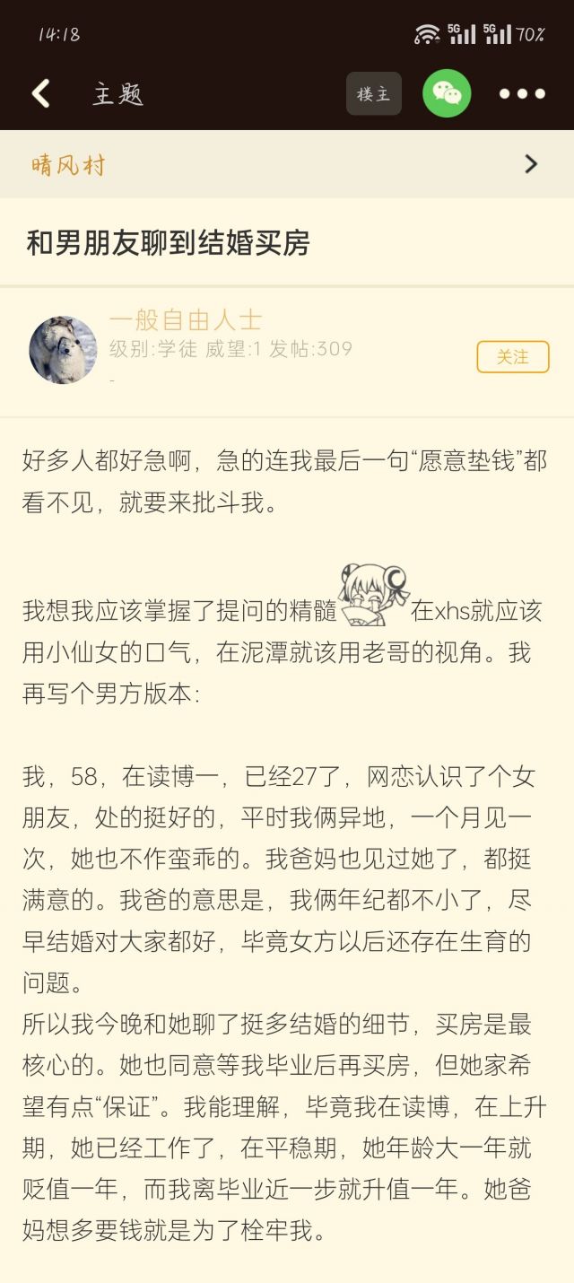 本身要彩礼这件事我就觉得很心虚,要完钱再要东西,这让我的良心非常痛苦。拿人手短吃人嘴软,收了钱我就要对他伏低做小、感恩戴德,tnnd,凭什么