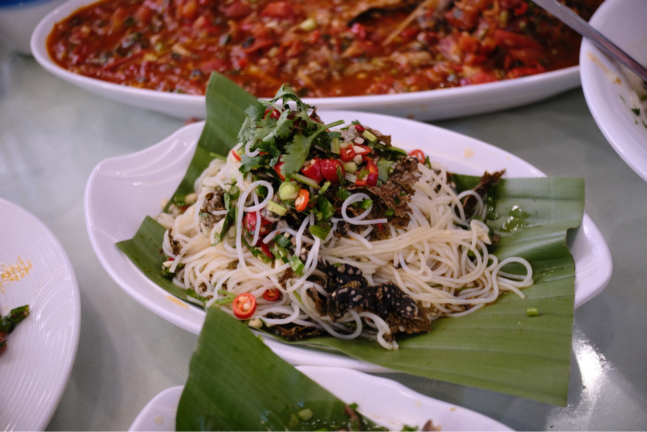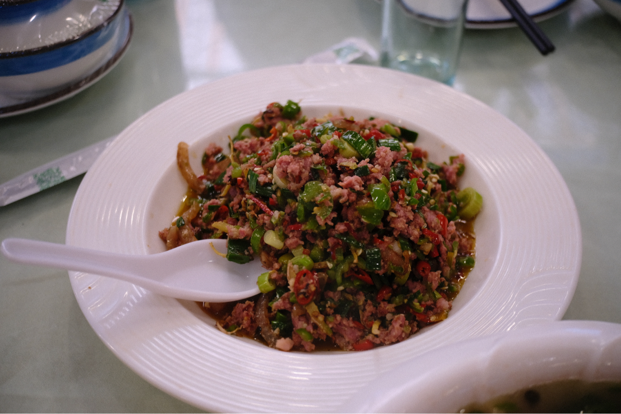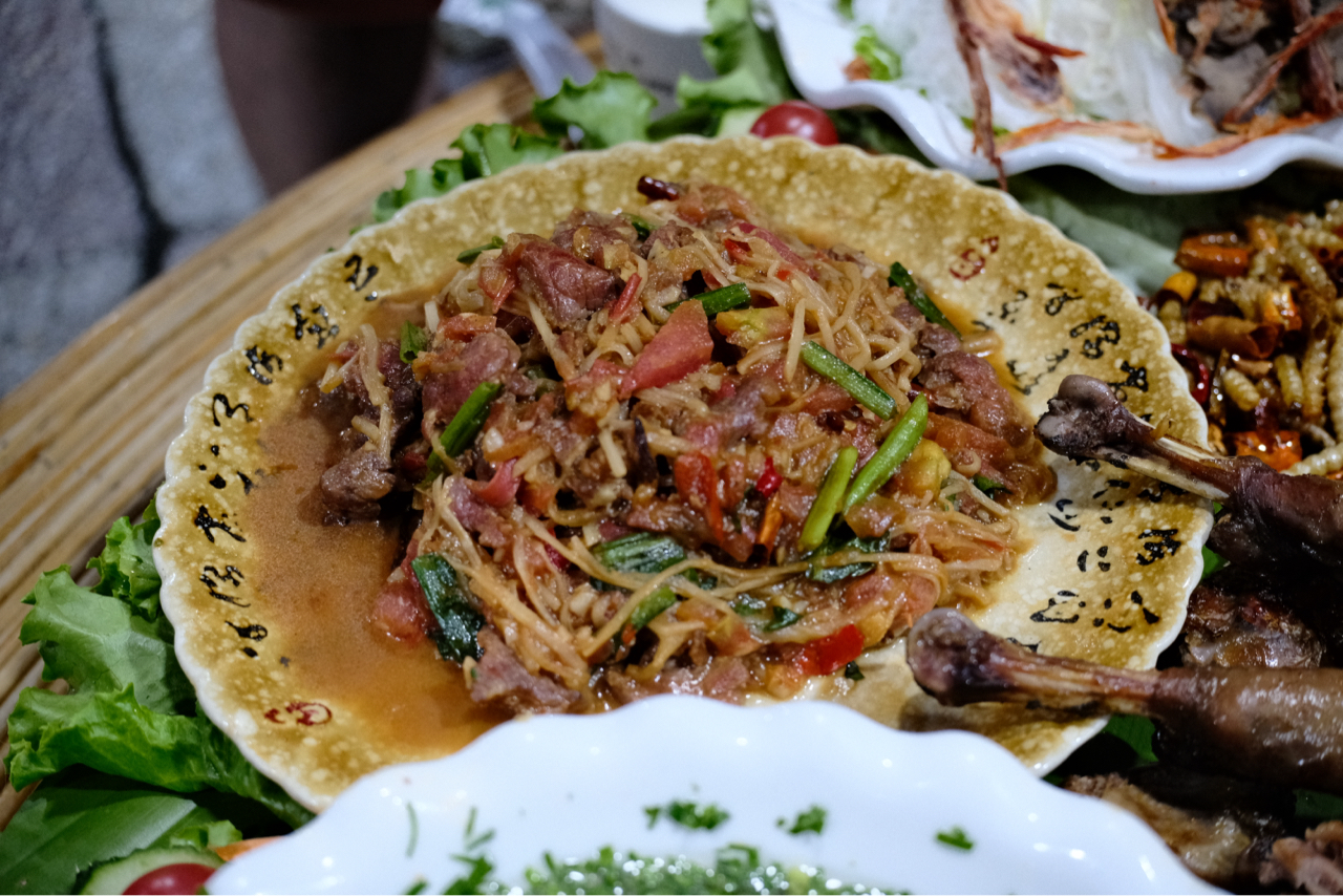 据说现在本地人吃苦撒撇的都很少,牛内脏拌的,点柠檬的会好很多。略微有点苦,吃不太惯