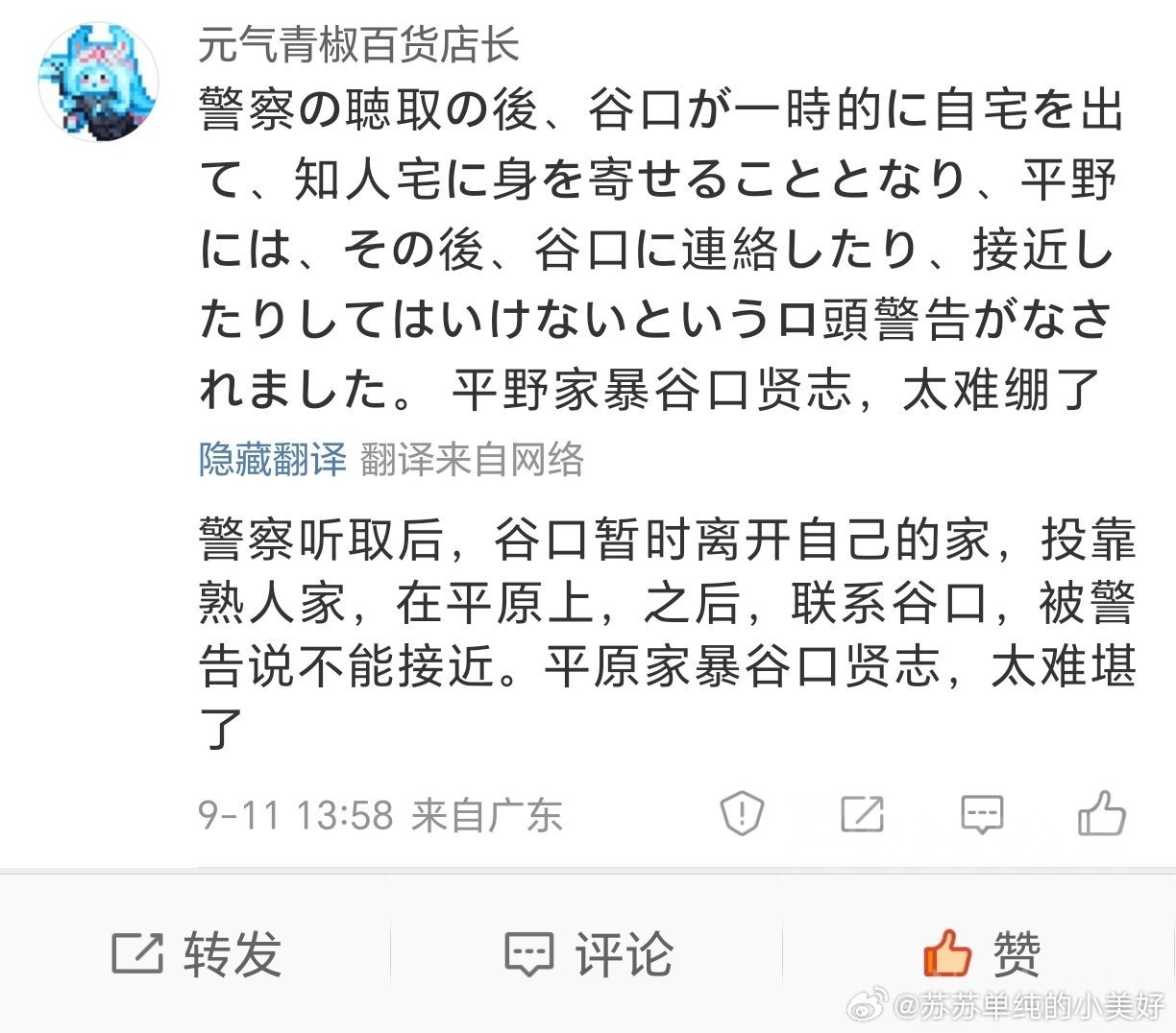 注意里面那个TAG,她们用的TAG写的看起来好像女方平野绫是受害者一样