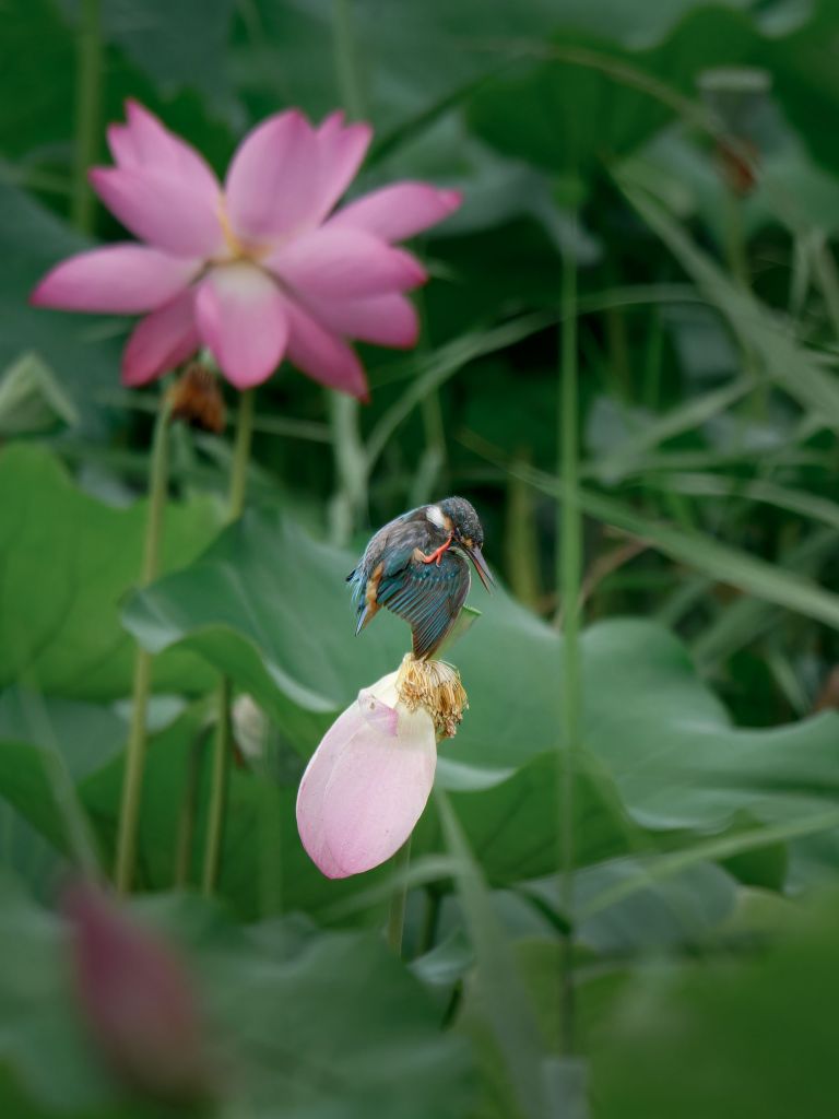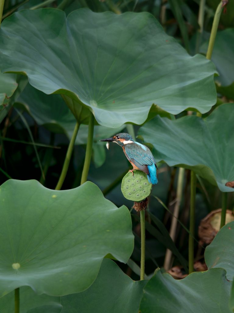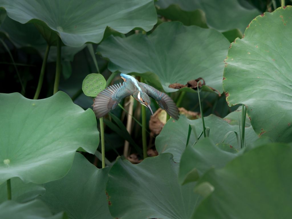比较可惜的是最终回家选片,有几张翠鸟从水面回到荷叶杆上的照片,无论是姿态、场景还是构图都很好,但是没有一张是对上焦的啊,真的很可惜。