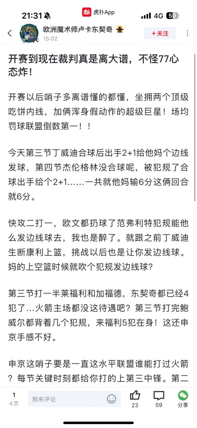 第三节打一半莱福利和加福德,东契奇都已经4犯了…火箭主场都没这待遇吧?第三节打完鲍威尔都背着几个犯规,来福利5犯在身!这还申京手感不好。