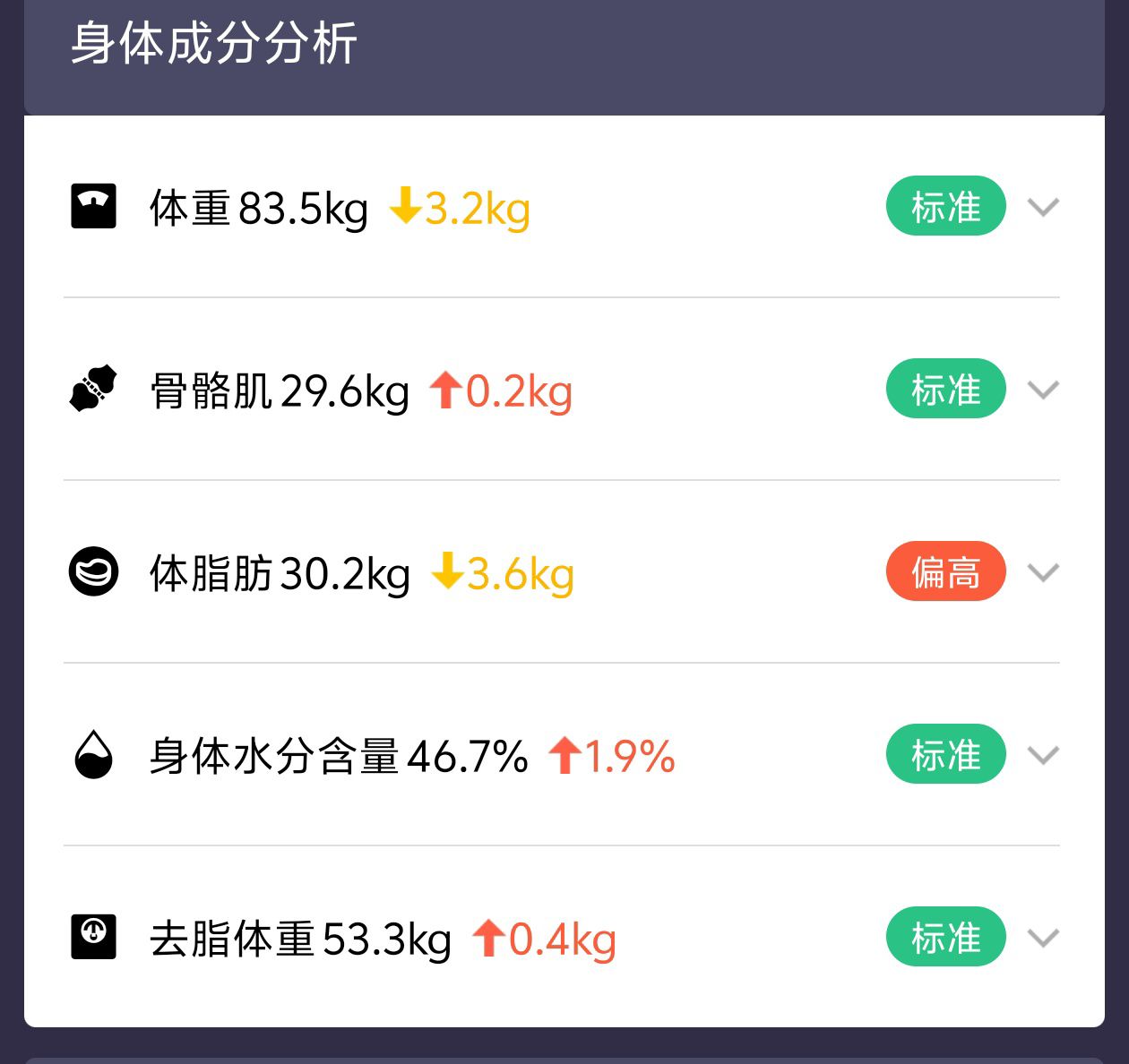 我一开始,用健身房的仪器测,大概是68kg左右,体脂率20吧好像
