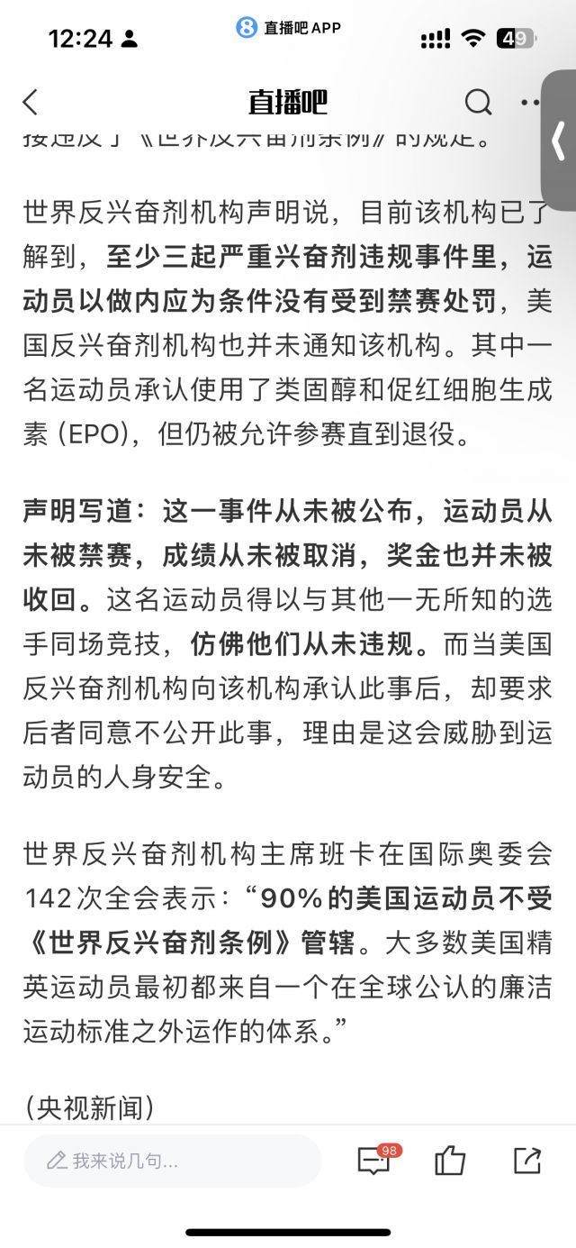 如图,有没有客观点老哥,外网怎么看待的,USADA有没有作出回应