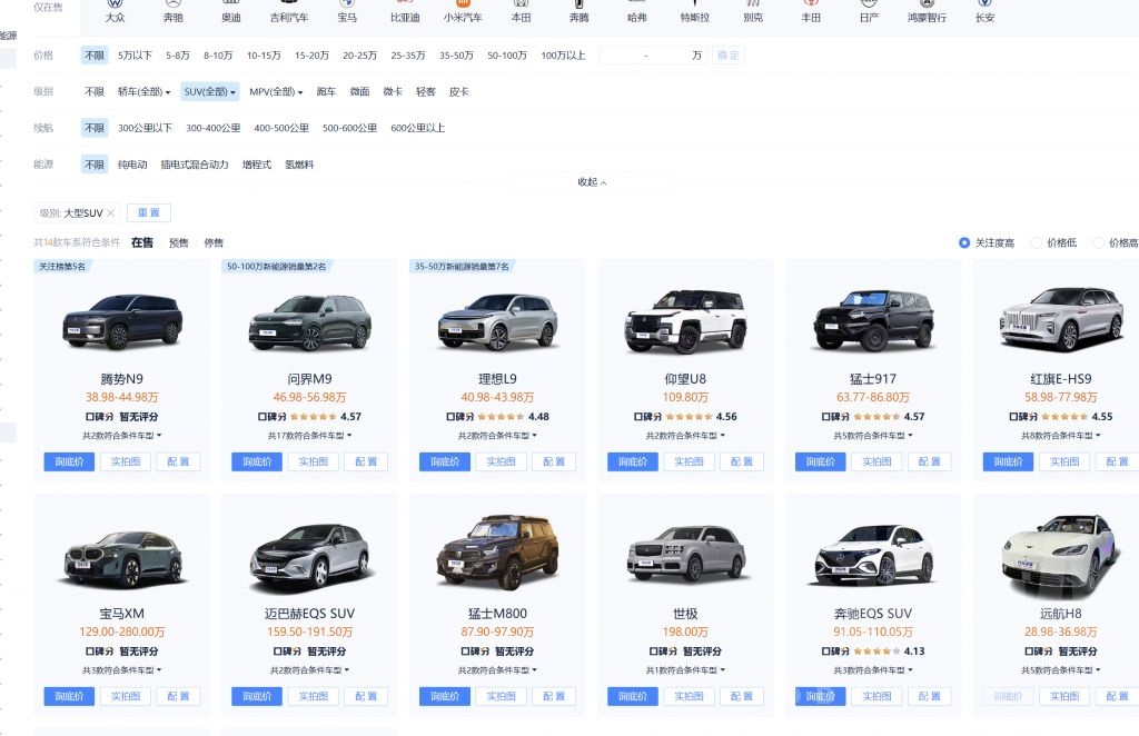 全尺寸的 suv 又基本都是增程的,纯电买不了。