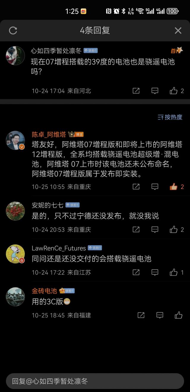 本来这个月有点想定阿维塔07了,结果24号宁德时代官宣新款增程车专用电池了?钠离子锂离子混搭电池,-20度低温耐性好,4c充电,行程400km?紧接着又说阿维塔07现在用的就是骁遥?之前只是宁德没官宣叫的超级神行。。我看现在07这电池3c充电,也没宣传低温耐性好,更没宣传过钠离子,这真的是24号宁王说的那个骁遥电池吗?还是塔子为了保年底预定量,强行把现在用的电池说成骁遥,明年准备换真骁遥电池玩背刺啊,这真看不懂了[s:ac:呆]