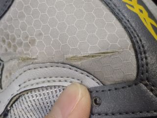 p1p2是我鞋头已经被我穿爆了,然后从网上买了补丁,但是没想到买厚了,是橡胶的。