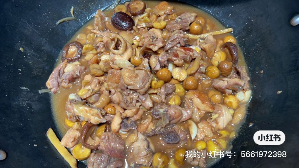 加桂皮白芷大料以及发好的香菇一起使劲闷。