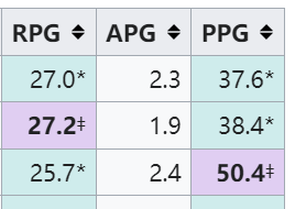 今日,美媒Extra Muse分享了一组数据,为NBA历史上单赛季场均得分+篮板+助攻总数的排名情况。