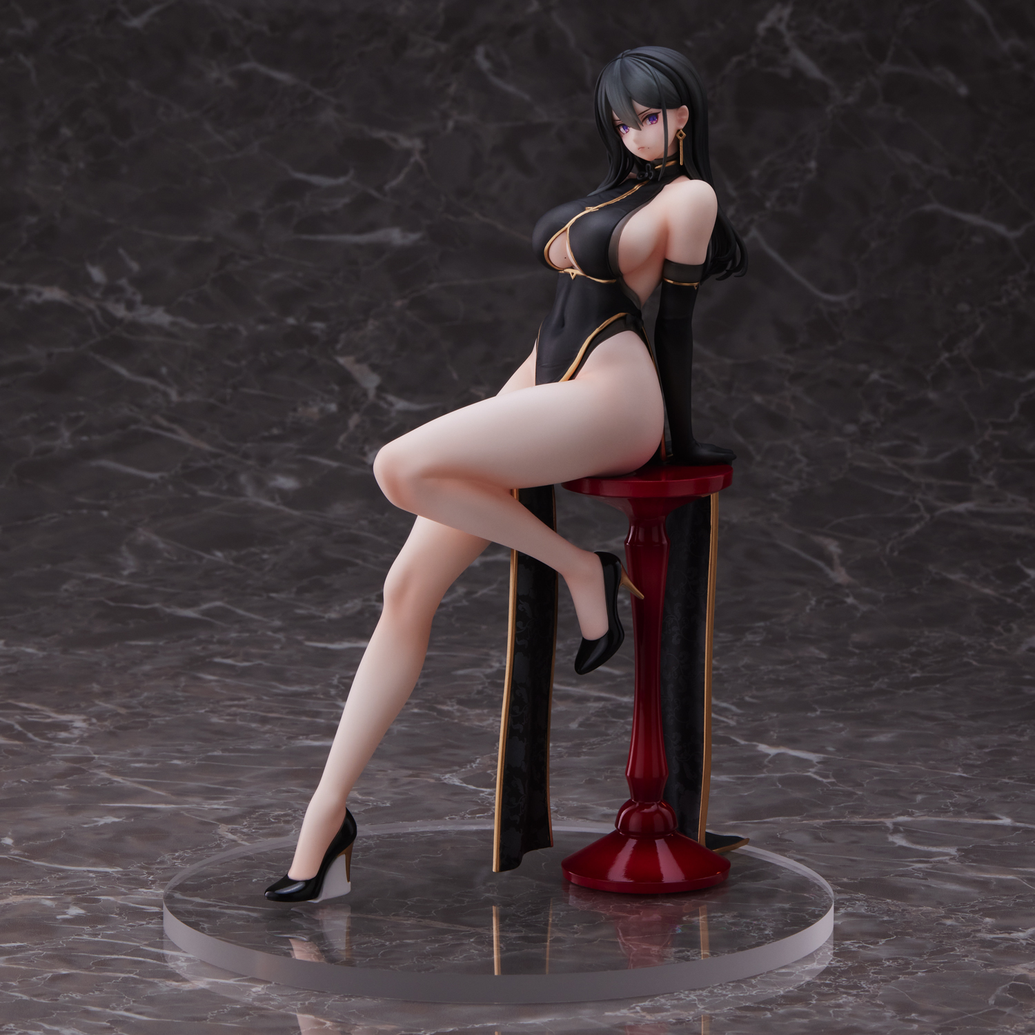 由 UnionCreative 出品的 黑旗袍小妹 ,全高约 25cm,材质为 PVC&ABS,售价 18000 円 (未税),预计 23 年 8 月发售。