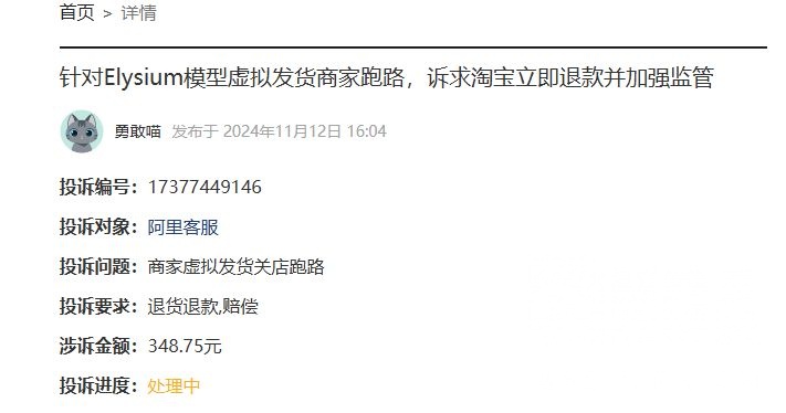 很经典的全款预售跑路。这个店大概是10月初开的。这家以远低于黄牛炒起来的当期预定价格挂了非常多的商品挺想这么一回事。如今已经删店跑路。大量预定的受害者跑到贴吧和黑猫投诉哭诉无门。