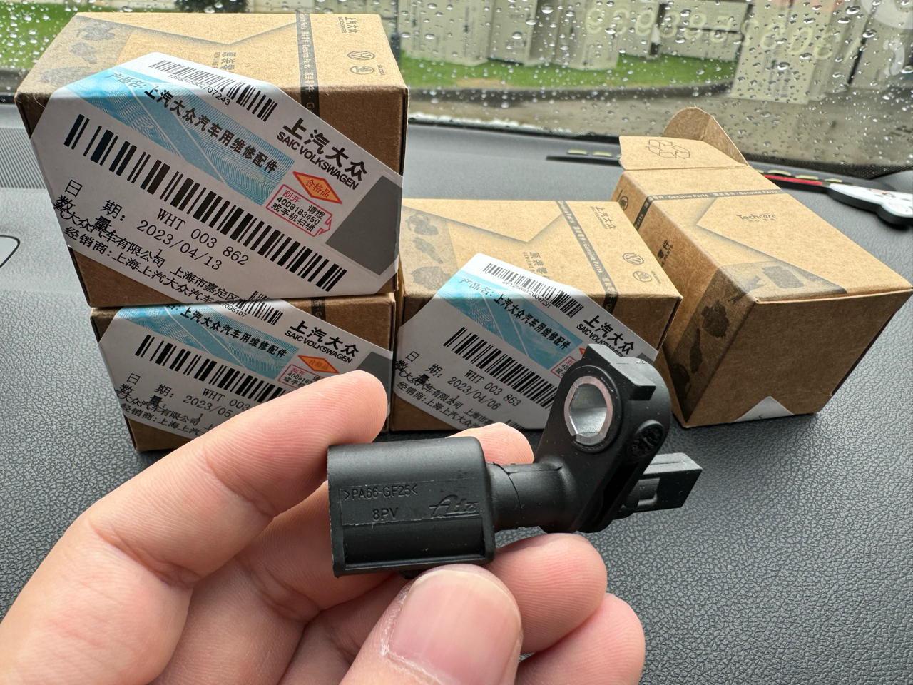 最近家里老迈腾亮了一堆故障灯 应该是abs传感器出问题了,4s报价400多修一个,老爹觉得太坑遂叫我上网买配件去汽修厂换。