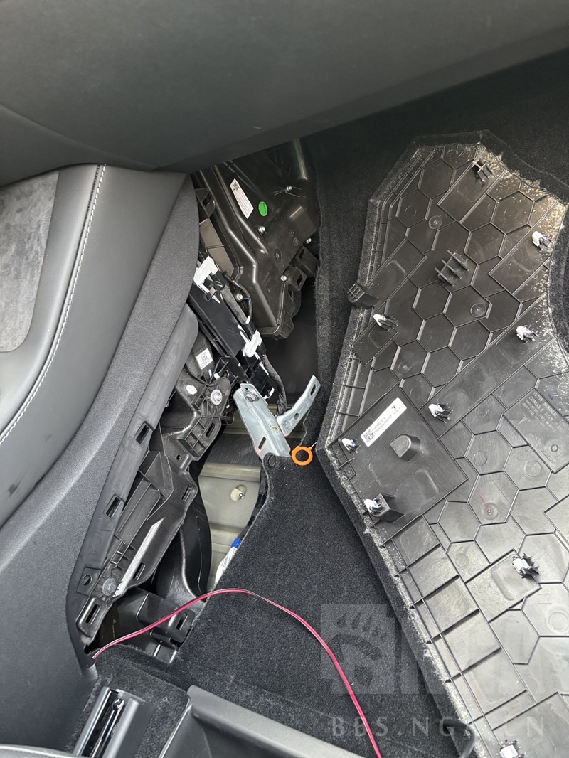 2、拆开副驾侧板,走线,经过手套箱下方和副驾驶A柱