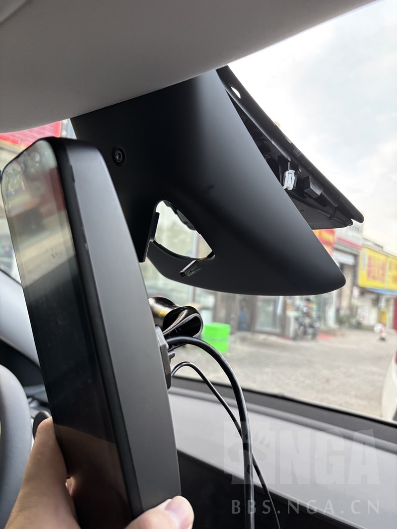 3、拆除原车后视镜,换成流媒体后视镜,底座是旋转卡口,顺时针扭45度即可拆下