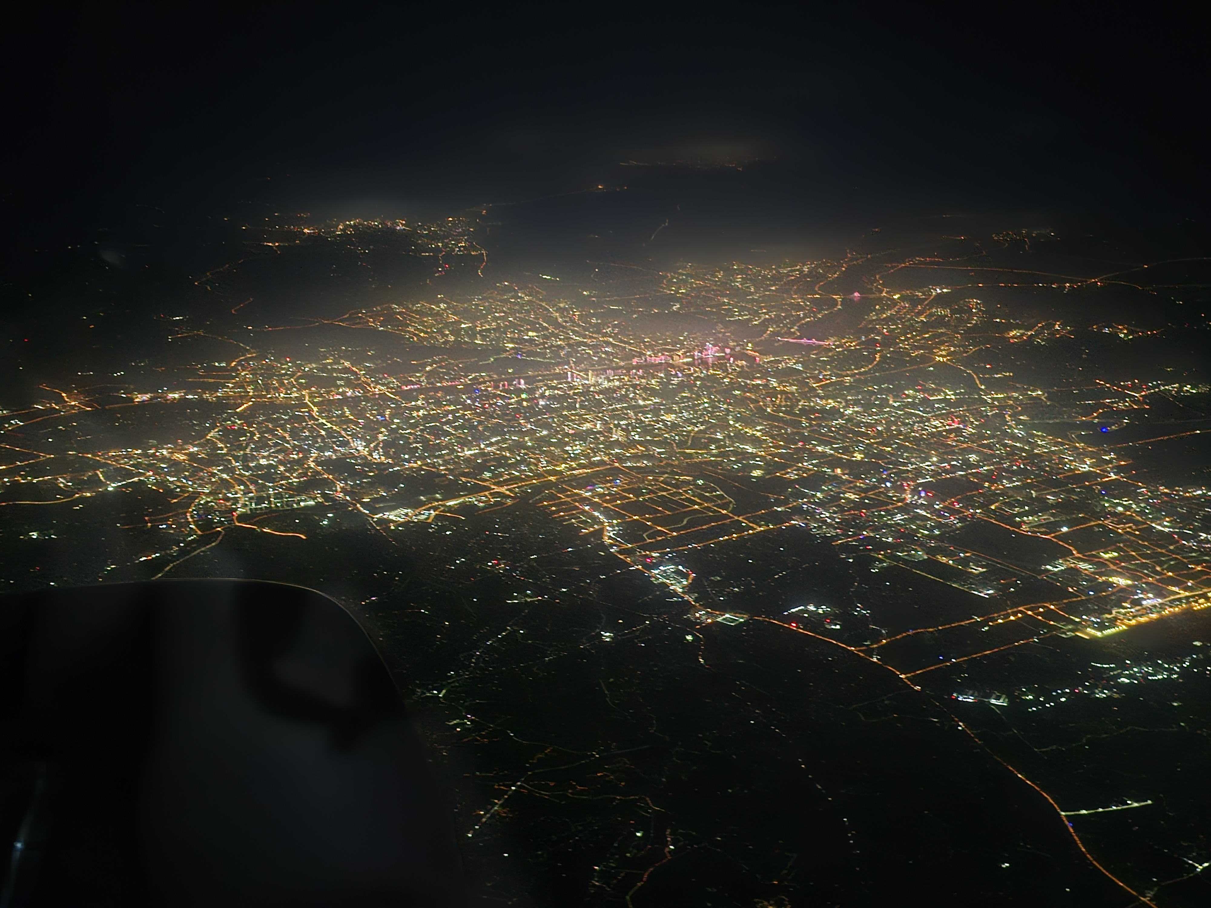 上海的没有,我靠右窗边座位。。降落浦东机场,完全拍不到上海夜景