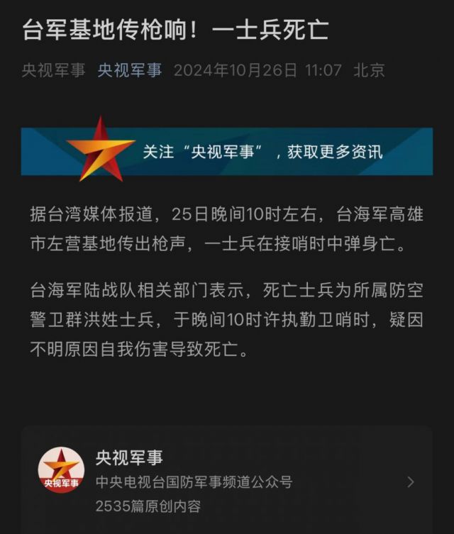 一名台军中弹身亡,大的要来了?