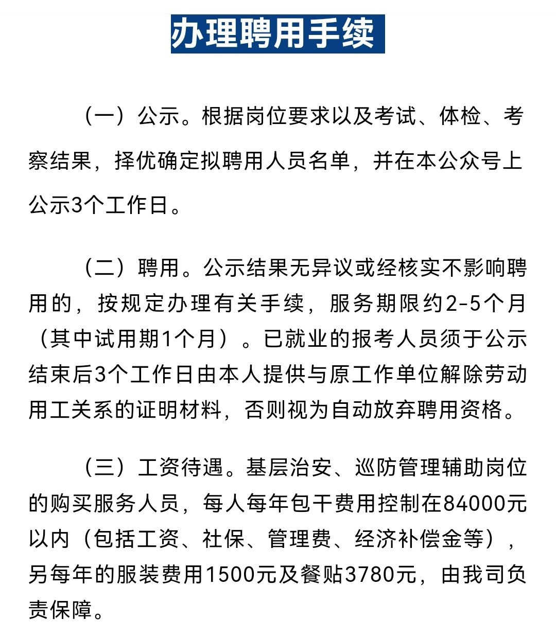 3.薪酬待遇:试用期满考核合格后年收入约6.02 万元/年(包含五险一金,即养老保险、医疗保险、失业保险、工伤保险、生育保险和公积金),具体缴纳办法按有关政策规定执行;