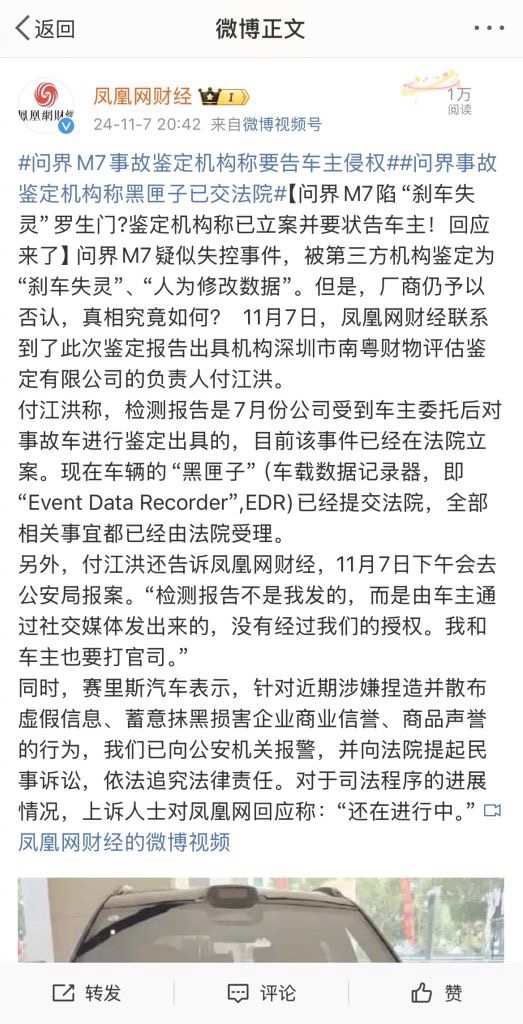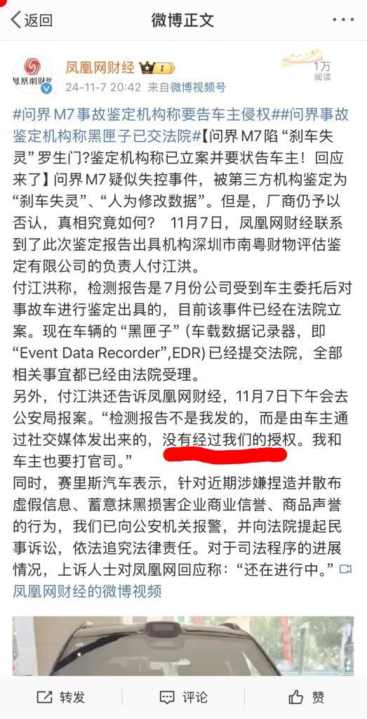 告的是车主未经机构同意发布检测报告,又不是告的车主造假