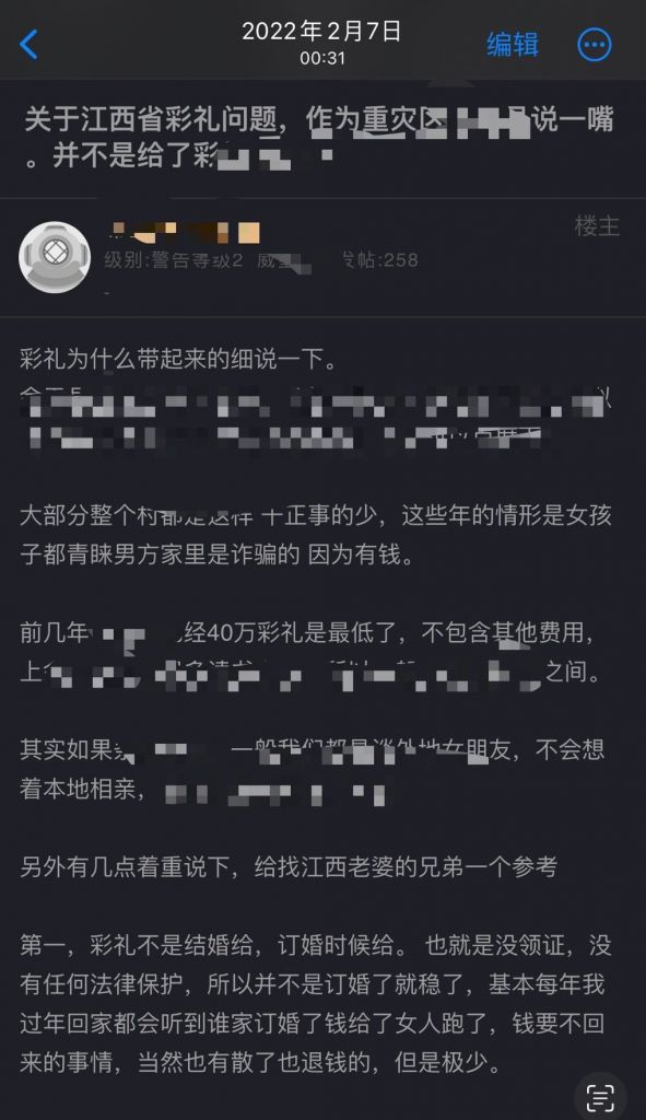 作为一个江西农村人,正常来说是不会关注在意这些的,见怪不怪麻木,只是我偏文人属性,悲天悯人,虽然我出来上学工作很早,但是平常放假或者过年回老家看到听到的,加上我家族亲戚平常联系和本村发小的经历,也得益于我妈副业是媒人,即使这样我所知道也不过冰山一角