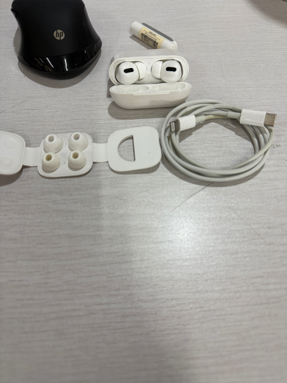 充电盒+右耳,没有杂音,降噪功能正常,使用3小时以上。一直裸奔,成色垃圾。原装线+2副耳套。