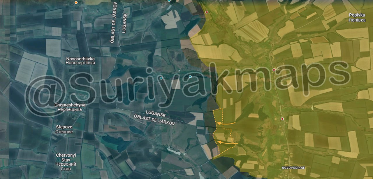 斯瓦托沃方面,俄军在卡尔马季诺夫卡附近将战线往卢甘斯克州与哈尔科夫州交界推进。