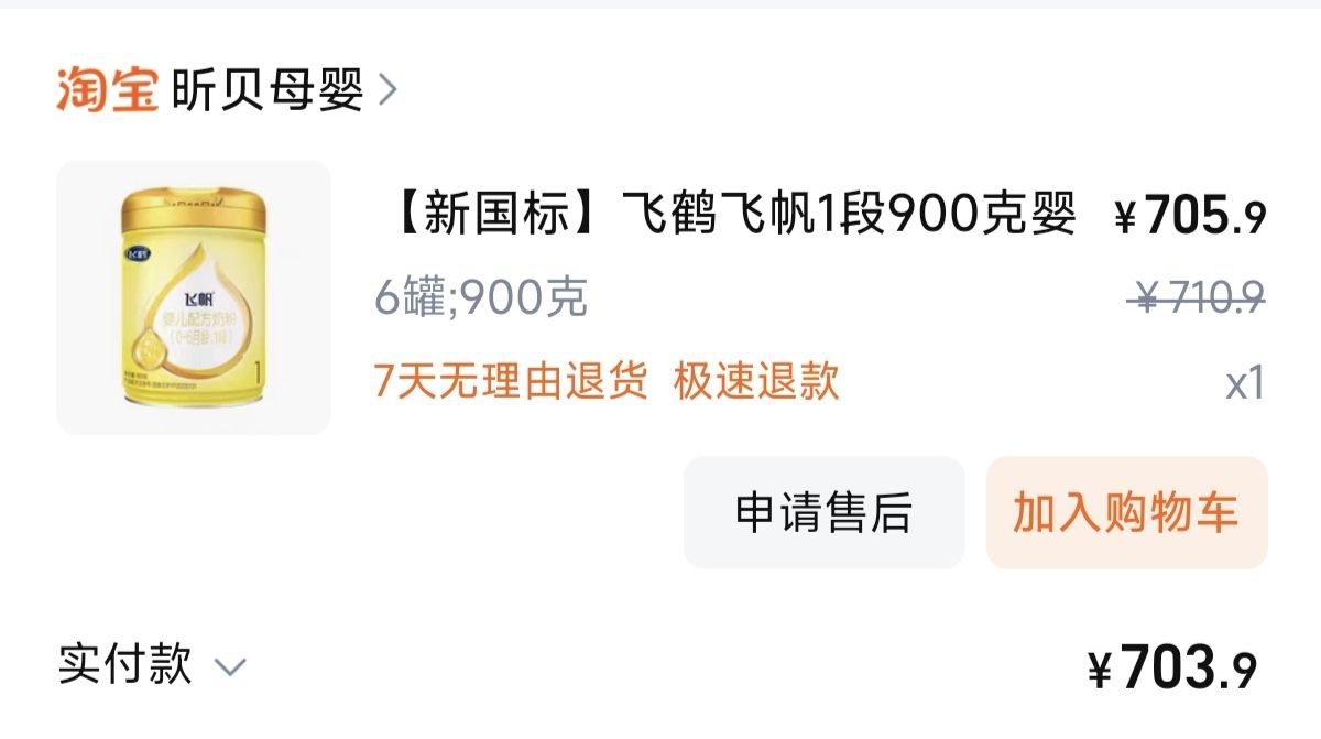 我们买的是飞鹤飞帆 不带 星 这个字哦