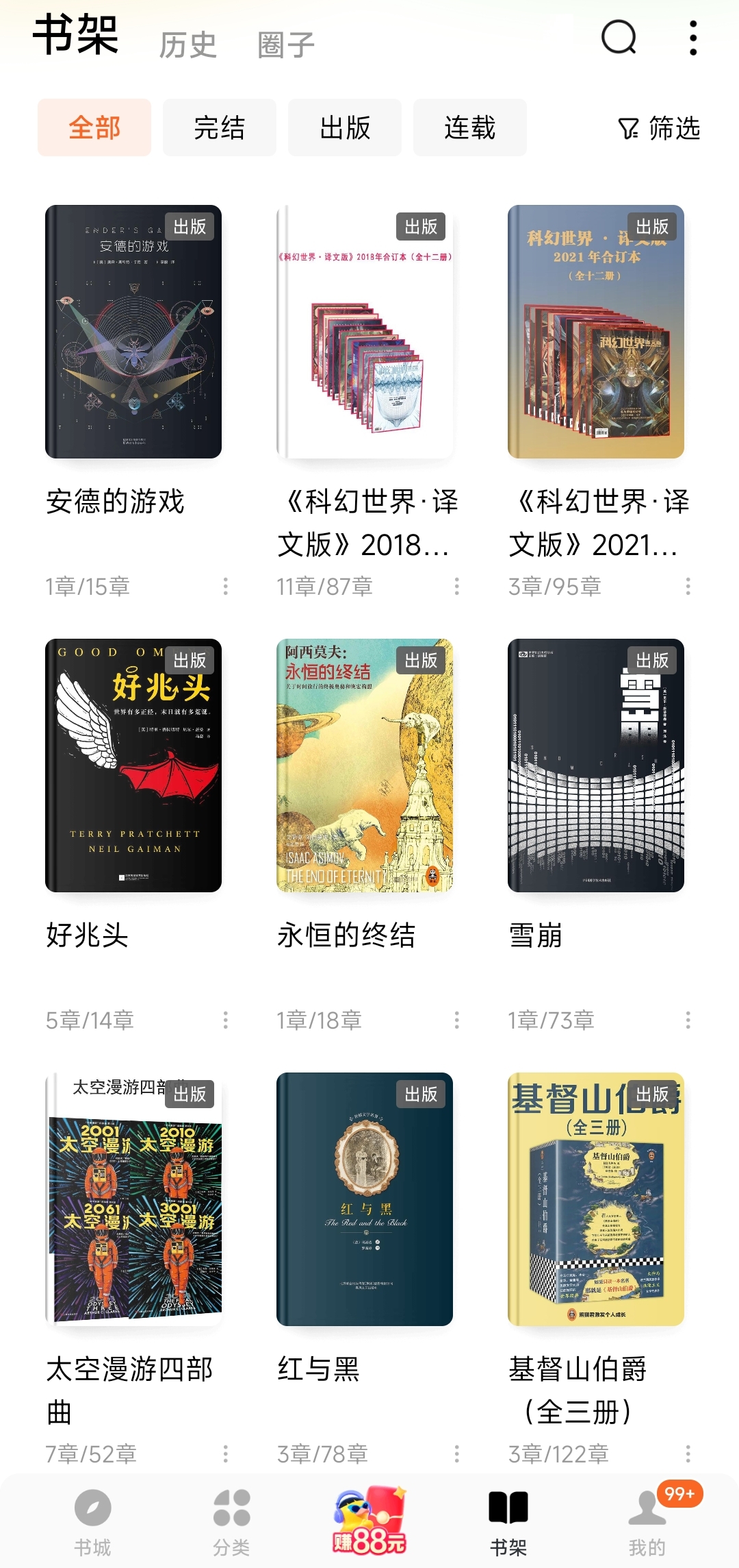 以前电子书不流行时候买了很多实体书,虚构80%非虚构20%,两书柜不止。
