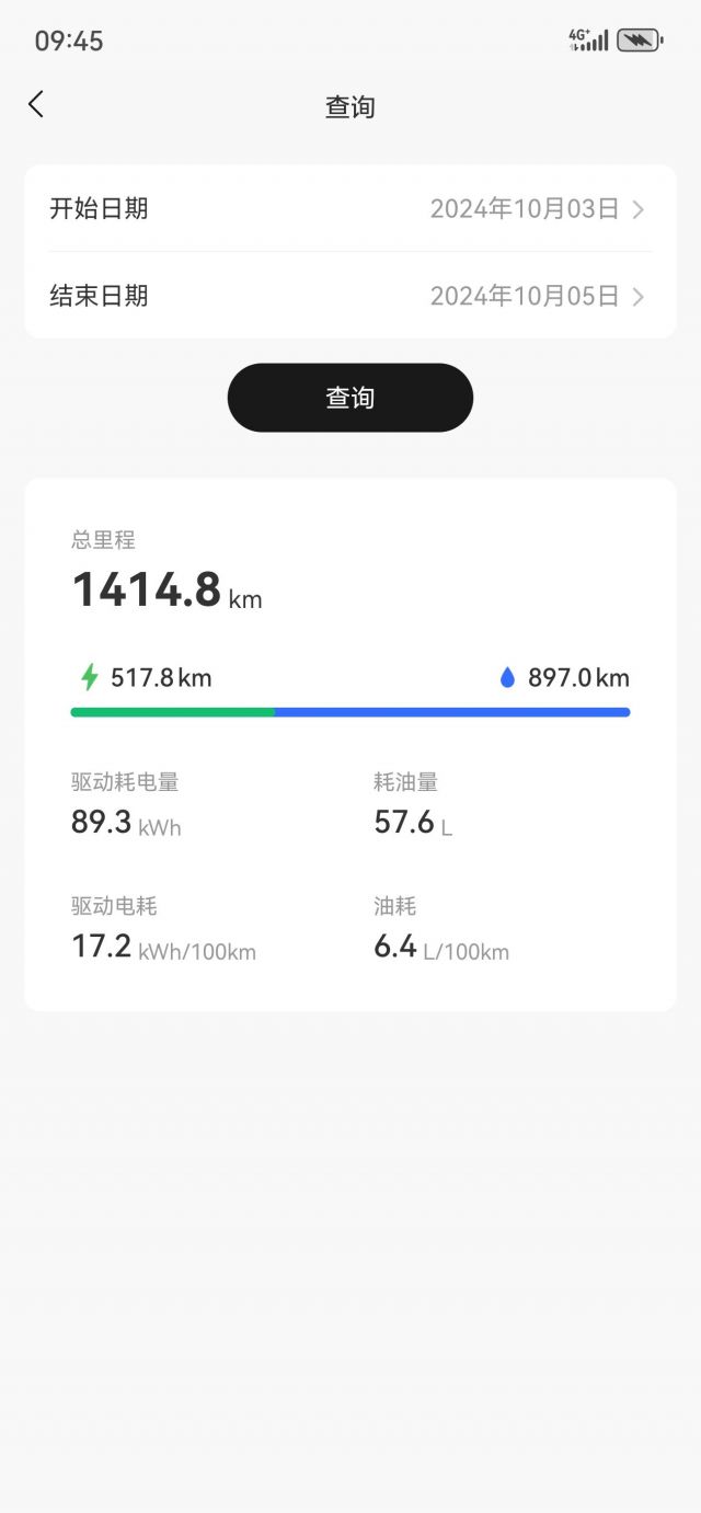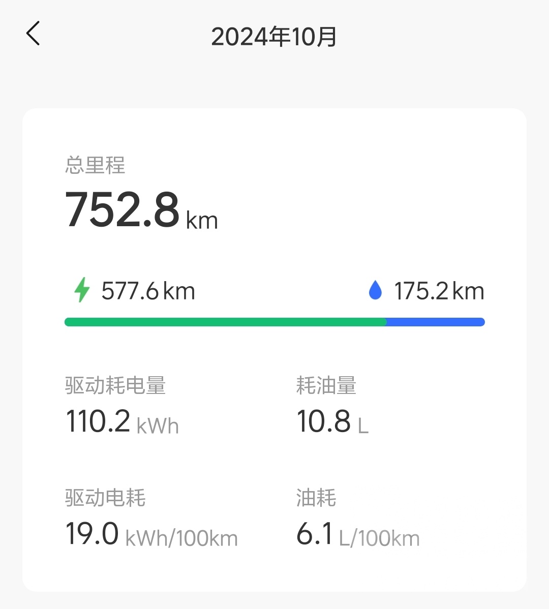 第一段比较低,是因为满电状态下,燃油优先也会用电。所以综合起来大概就是8.7左右的油耗。