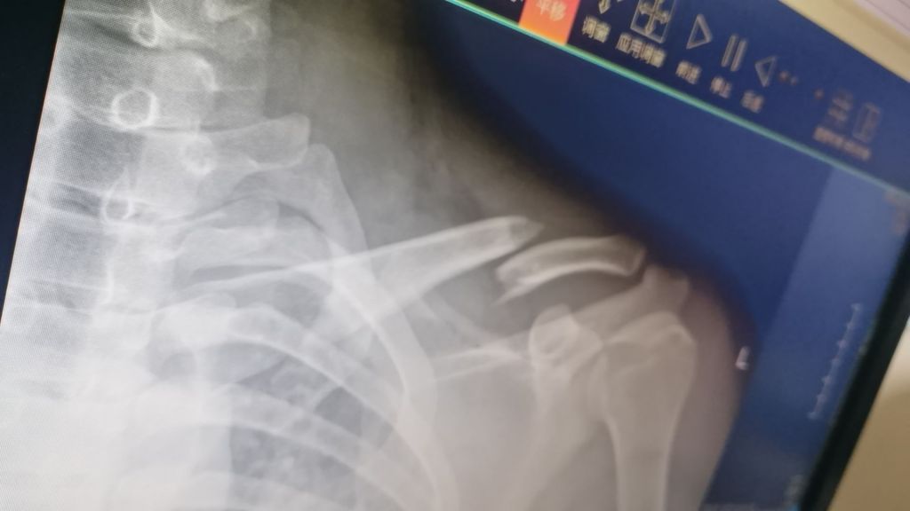 这几天出外勤,骑电动车下雨天点刹都打滑摔跤了,撞到旁边护栏锁骨粉碎性骨折