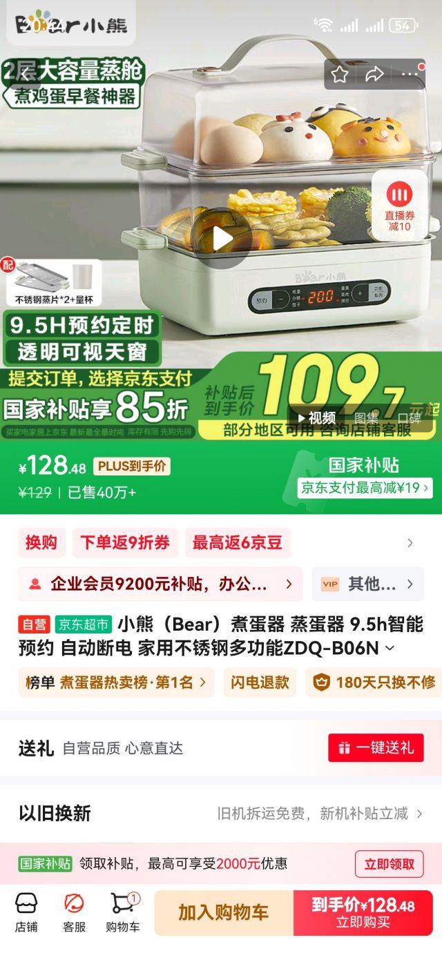 结果收到我傻眼了…这玩意和小米的价格差不多,体积小一圈,想着蒸个蛋也够了,结果试了一下。预约后居然不能设置烹饪时长,只能选固定的功能,一个40分钟,一个55分钟。好家伙我蒸个蛋,40分钟起步…