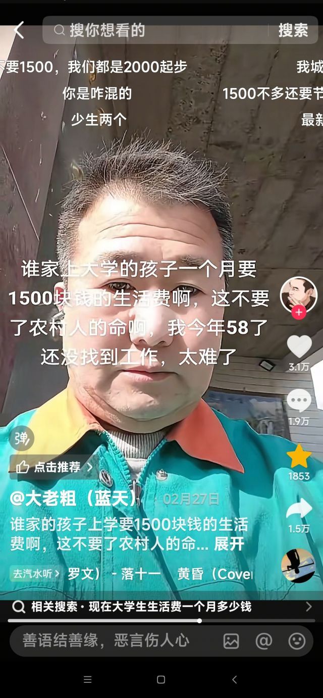 家里这条件还伸手要1500一个月不能自己出去勤工俭学,读完大学也是路边一条,周末开封菜站两天一个月下来都不止1500