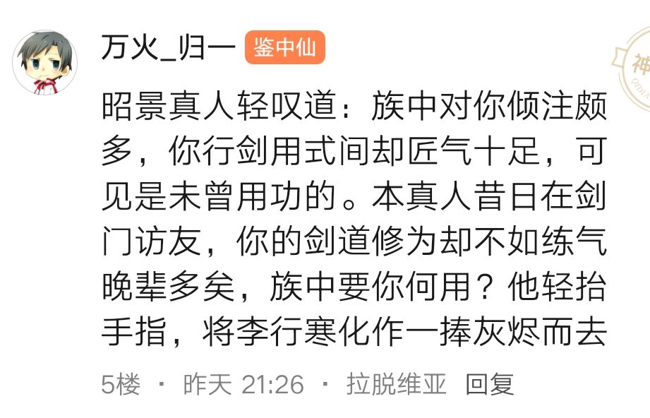更的少、错误多、硬拖剧情、边缘人物来回水,这种状态真不知道还有啥看点,等月底CJB突破紫府再看吧,肯定给你拖到月底,毕竟要求月票的