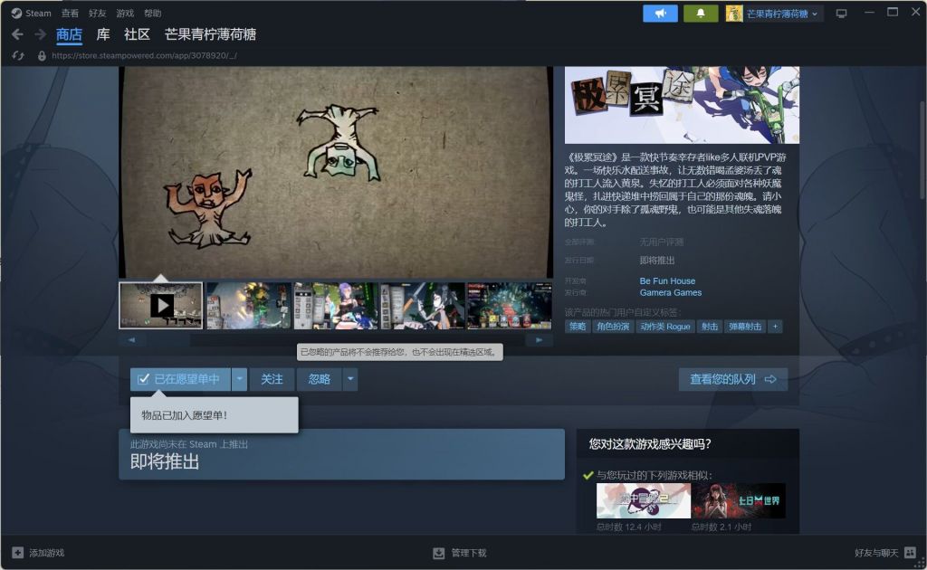 将《极累冥途》添加至你的愿望单,并将截图回复至本帖内,10月8日抽10个小伙伴送出5刀充值卡一张。