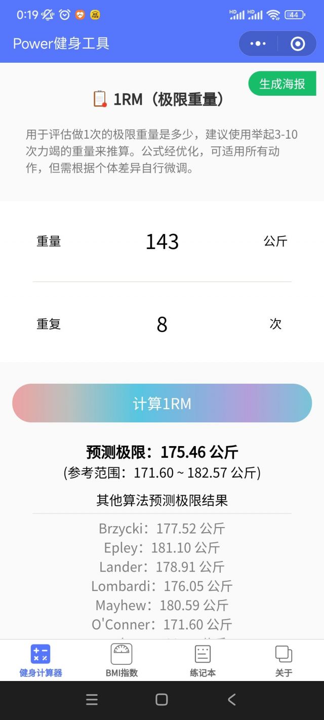 我143公斤可以推8个了,在网站上算出来的PR在180左右,训记上也推测是180。。。为啥我只能推160?
