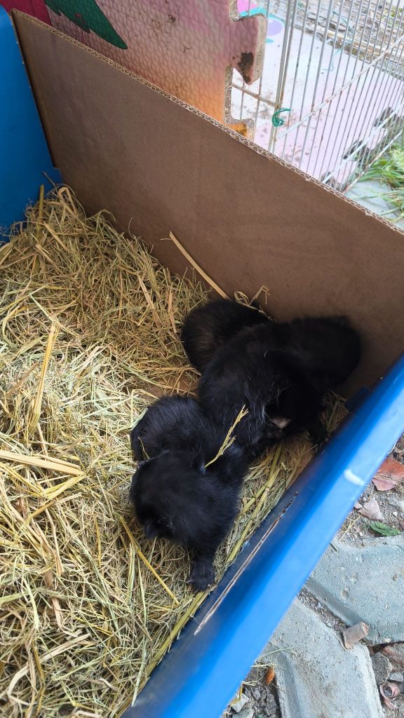 一个小猫生四个奶猫,不会死我车库里吧…这能养的活?给放纸箱子里放车库门口看看猫妈妈会不会回来叼走,邻居给铺了点干草,还有一盆猫粮,外面室温19度,不知道会不会冻死。