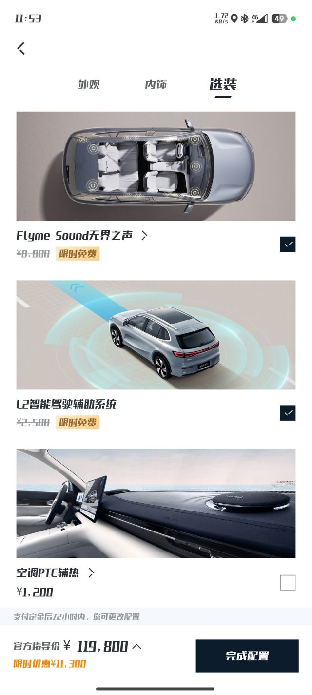 二是舒适性配置,座椅通风加热加大分,较好的音响加分,简洁舒适氛围好的内饰加分,hud加分。加上国产电车普遍比较高的智能化水平,足够使我选择它作为最近6-10年的代步车辆